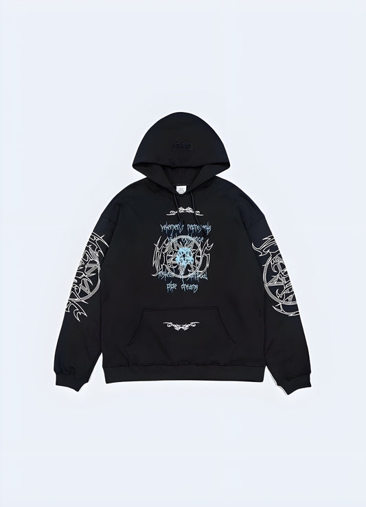 Pair with tech-centric bottoms and protective outer layers to complete the progressive look. Our cyberpunk hoodies also feature integrated comm systems in the hood to enable communication. Stay connected even in isolating neon-bathed side streets.