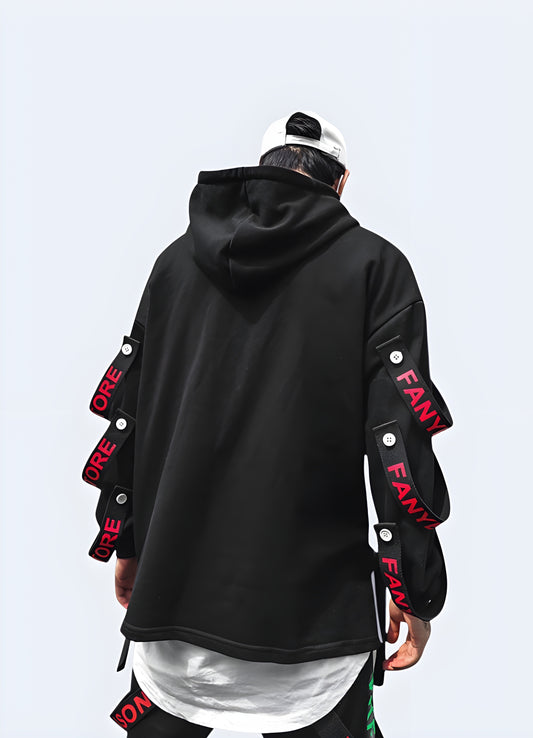 Techwear is known for strapped designs that bridge fashion with function. Hoodies outfitted with straps amp up the tactility while referencing martial arts roots. They allow for easily tying down over layers or packing away when not in use. Models featuring strap systems also structure the fit closer to the body with greater mobility.