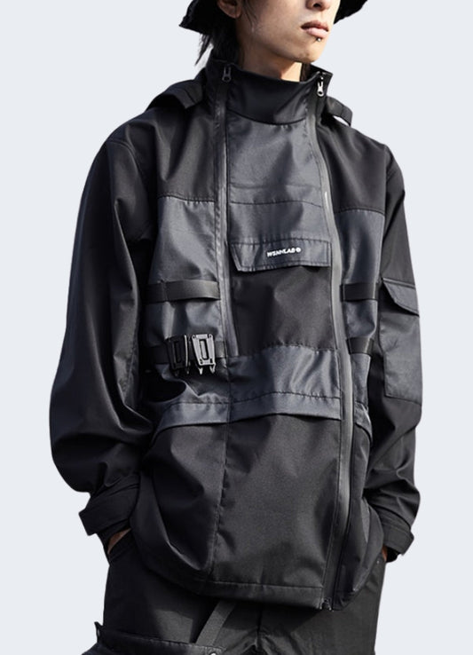 Street-ready techwear jackets crafted for investigating underground night culture while enduring unexpected conditions.